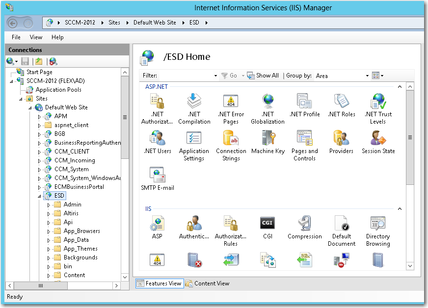 Open IIS Manager and select the ESD virtual directory under Sites in the tree.